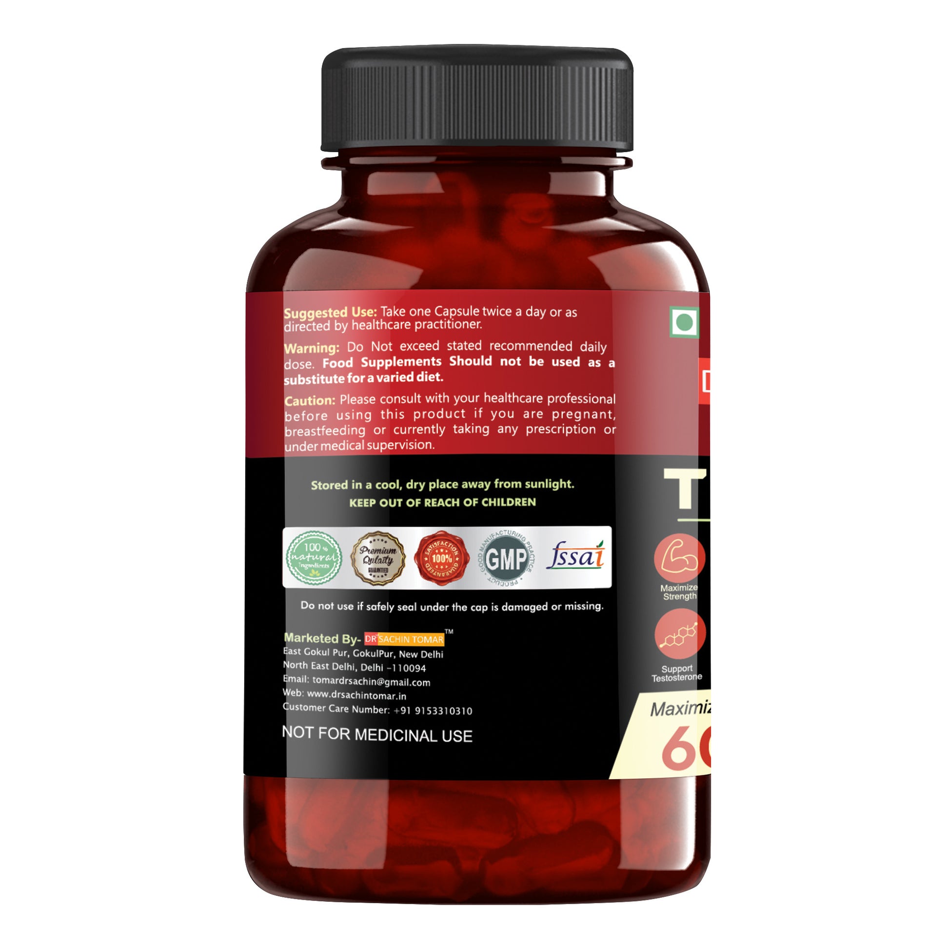 Powered by potent ingredients like Tribulus Terrestris (10:1 Extract), Ashwagandha Extract, Safed Musli Extract, L-Arginine (10:1 Extract), Siberian Eleuthero, and Black Pepper Extract, this formula supports testosterone production, muscle growth, and endurance while reducing fatigue and stress.